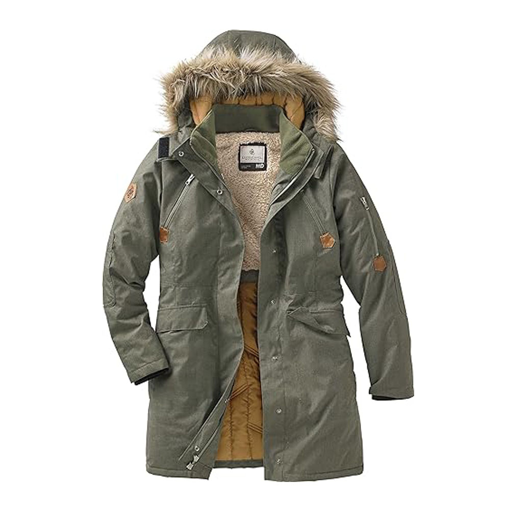 • STYLISH: Features removable zip-off faux fur lined hood and sherpa lining